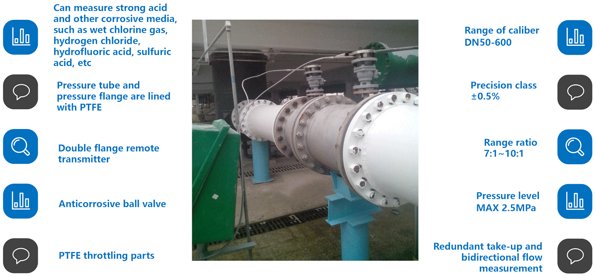 (1)Corrosive media corrodes key parts of flow measuring instruments in direct contact with media, causing damage and loss of function. For example, corrosion causes damage to the diaphragm of the differential pressure transmitter, leakage of silicone oil and complete failure.