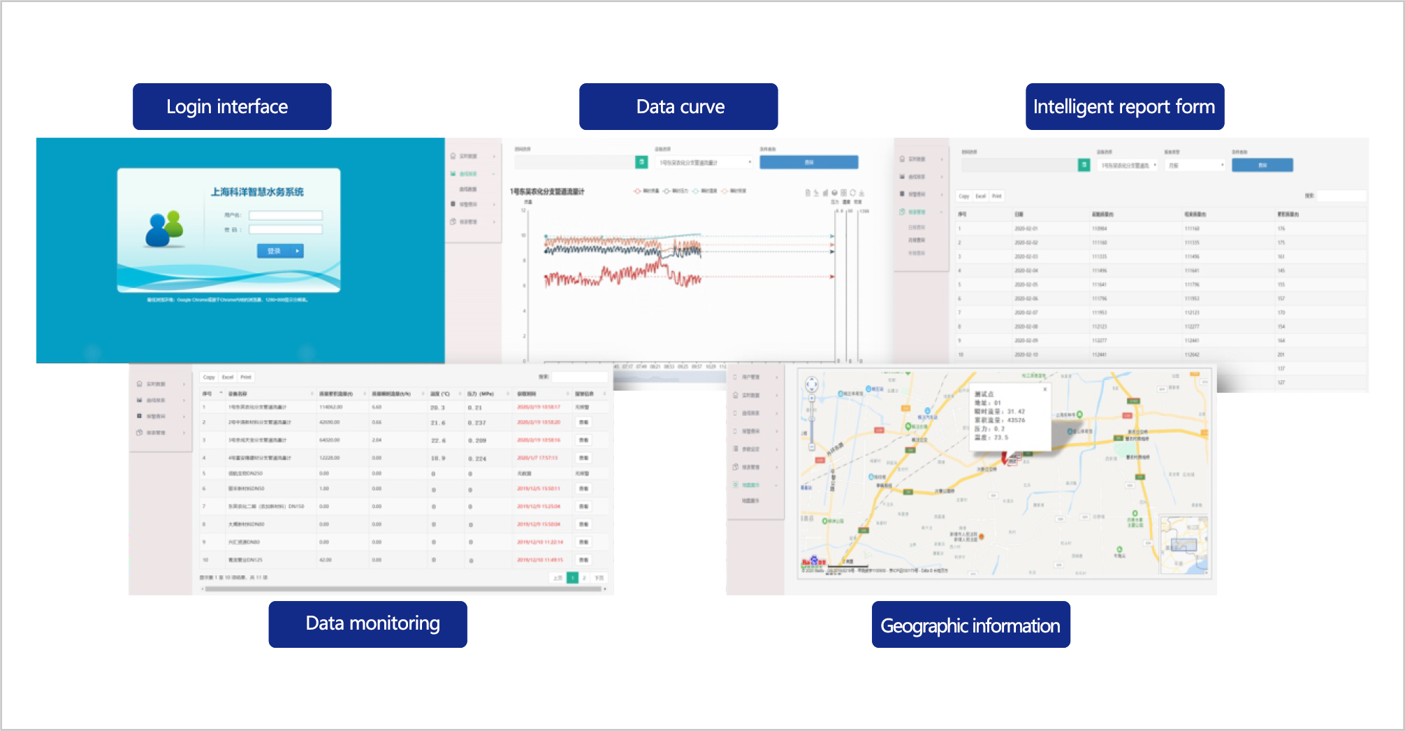 Shanghai Keyontechs leakage control management system applies the minimum flow at night, according to the ALR theory, utilizes the Internet of Things, and adopts high-end sensing devices (such as A+k electromagnetic water meter, leakage warning and leakage point positioning system). The leakage control system can quickly warn the leakage section after detecting the leakage area in the zoning metering management. This system is a deep integration of the new generation of information technology and water technology. It fully explores the value and logical relationship of data, realizes the intelligent control, data resource, precise management and intelligent decision-making of water business system, guarantees the safe operation of water facilities, and makes water business operation more efficient, management more scientific and service more quality. At the same time, the system can be compatible with the existing revenue system, GIS system, SCADA system, hydraulic model and other systems of the department of Water Resources, or incorporated into the comprehensive information management platform of the department of Water Resources, to help the construction of smart water resources of the Department of Water Resources.